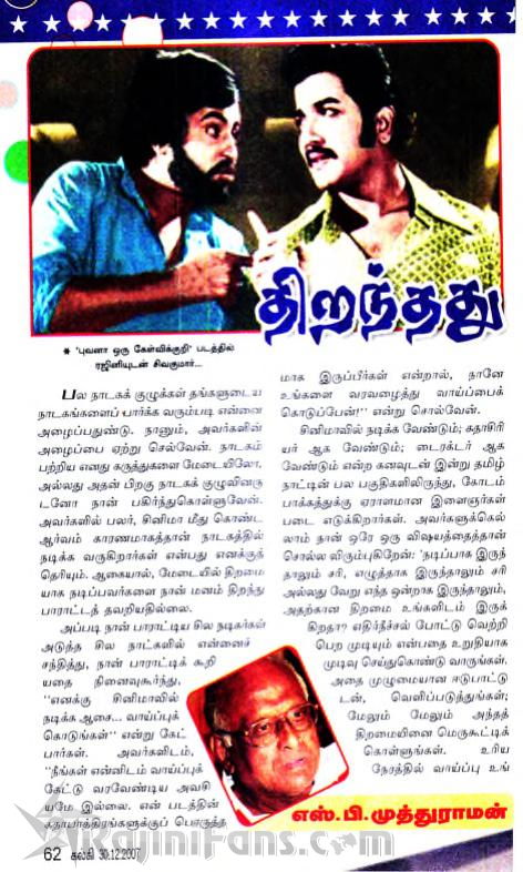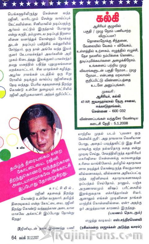 Rajini Route ... by SP Muthuraman ... Kalki Magazine (Part 2)