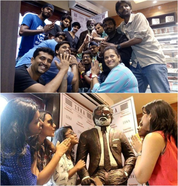 ரஜினி நடிப்பில் பெரும் எதிர்பார்ப்புகளை கிளப்பிக்கொண்டிருக்கும் படம் கபாலி. தங்கள் பங்குக்கு ஏதாவதொரு செயலைச் செய்து எதிர்பார்ப்பை அதிகரித்துக் கொண்டிருக்கிறார்கள் ரஜினி ரசிகர்கள். இவர்களுக்கு என்னாச்சு? இவ்வளவு கொண்டாட்டத்தில் இருக்கிறார்களே என்று எல்லோரும் சொல்கிற மாதிரி, ரஜினி உருவத்தை சாக்லெட் சிலையாக வடிவமைத்து கபாலியை வைரல் ஹிட் லிஸ்டில் தக்கவைத்து வருகின்றனர் ரஜினி ரசிகர்கள்.