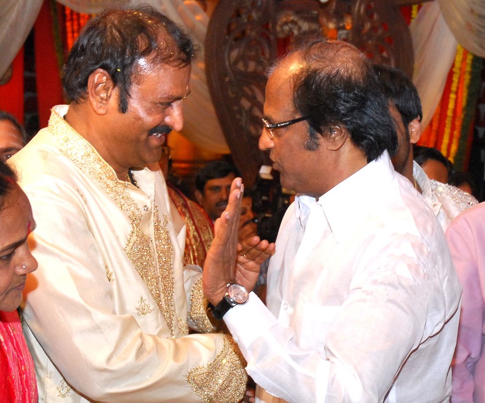 Superstar Rajini Knath, MohaNn Babu's thickest friend for year, attended this Royal marriage function with his wife and daughters Aishwarya and Soundarya and conveyed his wishes to the newly married couple.