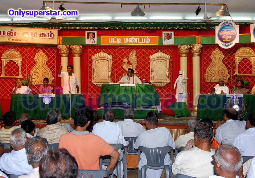 பெரியவர் அய்யா ஆர்.எம்.வீ, மற்றும் மத்திய அமைச்சர் ஜெகத்ரட்சகன், முன்னாள் அமைச்சர் ஹண்டே, கவிஞர் காசி முத்து மாணிக்கம், சிலம்பொலி செல்லப்பன் ஆகியோருடன் அமர்ந்து பட்டிமன்றத்தை முழுக்க இருந்து ரசித்தார் சூப்பர் ஸ்டார். ஈரோடு தமிழன்பன் உள்ளிட்ட பல தமிழ் அறிஞர்களும் இவ்விழாவில் கலந்துகொண்டனர். (அடுத்த நாள், தினத்தந்தியில் மட்டும் இந்நிகழ்ச்சியில் சூப்பர் ஸ்டார் கலந்துகொண்ட புகைப்படம் வெளியானது. வேறு எதிலும் நிகழ்ச்சியின் புகைப்படம் வெளியாகவில்லை.)