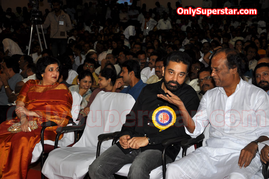 "ரொம்ப சந்தோஷமான நிகழ்ச்சி இந்த விழாவில் நடந்தது. எனக்கு தெரிந்து எம்.ஜி.ஆரும், சிவாஜியும் சேர்ந்து ஒரு பரிசை கொடுத்து இருக்க மாட்டார்கள். அந்த வாய்ப்பு எனக்கும், கமலுக்கும் கிடைத்தது மிகபெரிய பாக்கியம்.