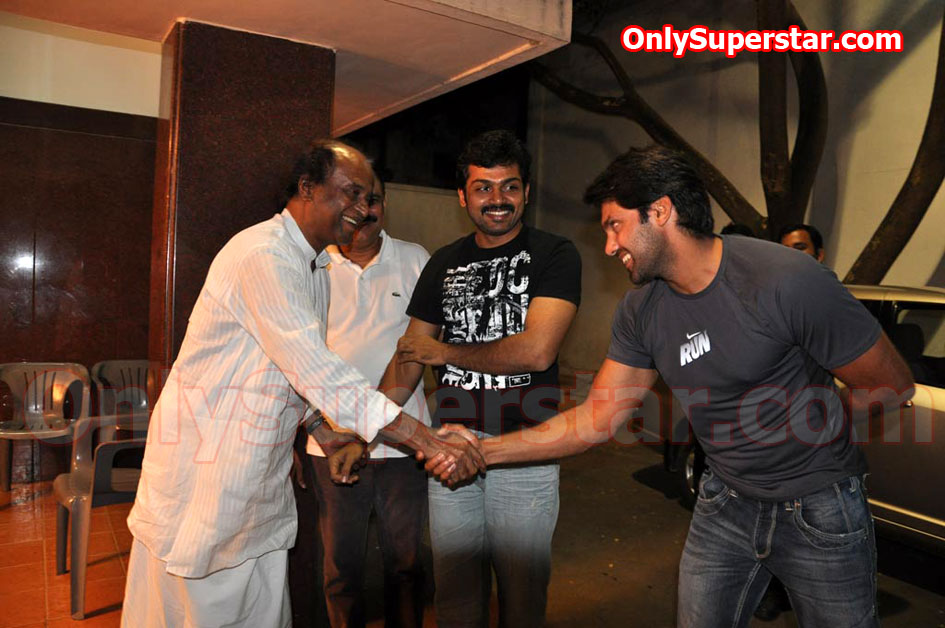 படத்தை பார்த்து விட்டு, கார்த்தியின் நடிப்பை வெகுவாக பாராட்டினார் கோடியில் ஒருவன் சூப்பர் ஸ்டார் ரஜினிகாந்த். படத்தின் டைரக்டர் செல்வராகவன் பின்னர் வந்து சேர்ந்துகொண்டார்.