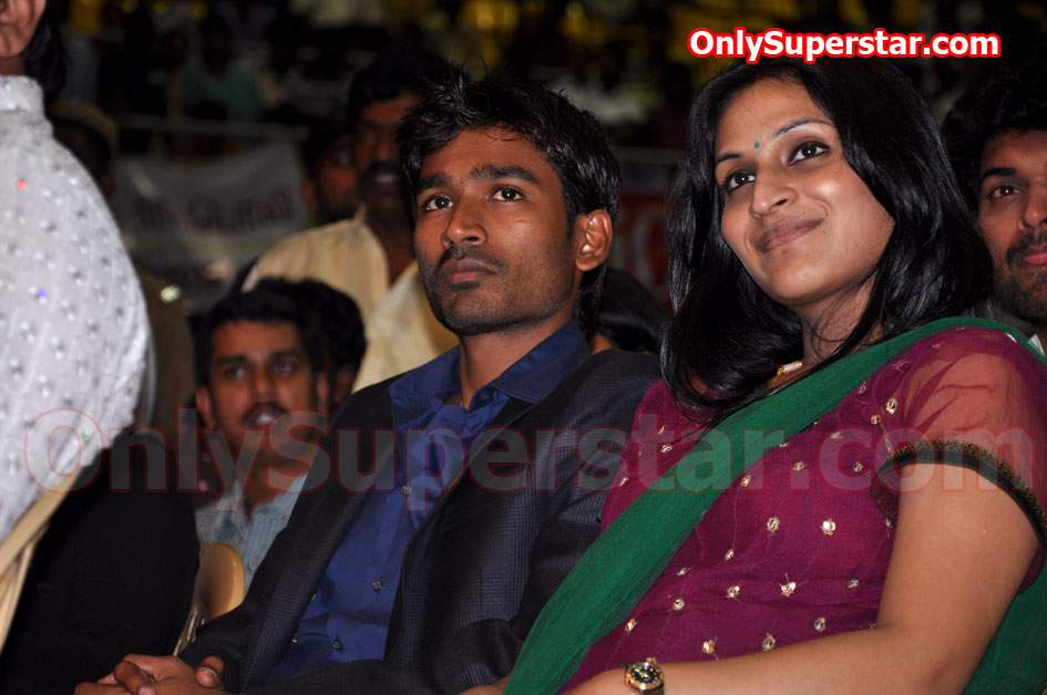 சூப்பர் ஸ்டாரை க்ளோசப்பில் ஸ்க்ரீனில் காட்டிய்பொழுதெல்லாம் கைதட்டல் இருந்ததென்றால், நிகழ்ச்சிக்கு வந்திருந்த ஐஸ்வர்யா தனுஷை ஸ்க்ரீனில் க்ளோசப்பில் காட்டியபொழுது கூட கைதட்டல் பலமாக இருந்தது பெரிய ஆச்சரியம். (இது தனுஷுக்கு கிடைத்த கைதட்டல். அது தான் உண்மை!!)