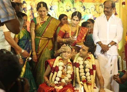 The wedding was attended among others by Union Home Minister P. Chidambaram, Tamil Nadu Chief Minister M. Karunanidhi, MDMK leader Vaiko, filmmaker Mani Ratnam, Rajini's mentor and director K. Balachander, actor Kamal Haasan, Praja Rajyam Party president Chiranjeevi, actor Sridevi and husband Boney Kapoor.