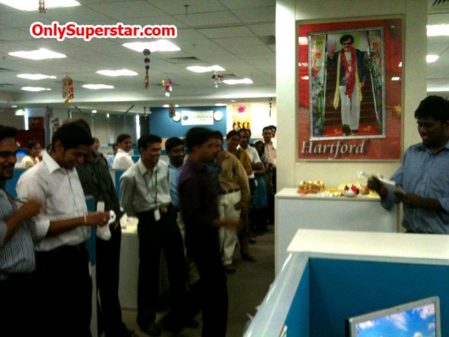 சூப்பர் ஸ்டாரின் பிறந்த நாள் & எந்திரன் வெற்றி விழா - தங்கள் அலுவலகத்தில் கொண்டாடிய சாப்ட்வேர் ஊழியர்கள் !