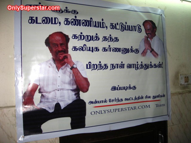 சூப்பர் ஸ்டாரின் பிறந்த நாளன்று ரசிகர்கள் வித விதமான போஸ்டர்களை எழுப்பி அதை போயஸ் கார்டன் மற்றும் சுற்றுப்புறங்களில் ஓட்டுவது வாடிக்கை.