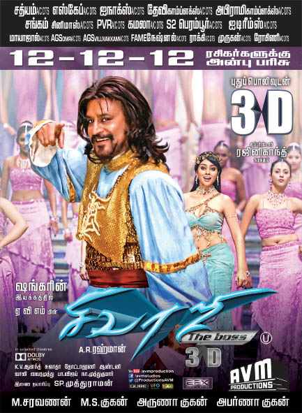 ரசிகர்களால் மிகவும் ஆவலுடன் எதிர்பார்க்கப்பட்ட ‘சிவாஜி 3D’ திரைப்படம் டிசம்பர் 12, 2012 சூப்பர் ஸ்டார் திரு.ரஜினிகாந்த் அவர்களின் பிறந்த நாள் அன்று வெளியாகிறது.