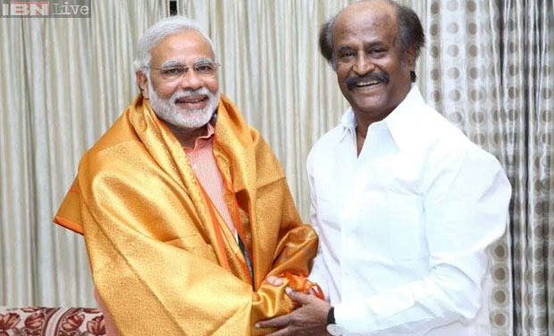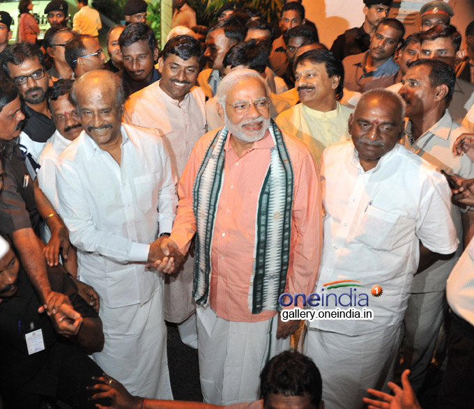 Bharatiya Janata Party’s prime ministerial candidate Narendra Modi met Tamil film actor Rajinikanth at his residence in Chennai on Sunday.