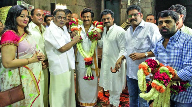 The pooja ceremony for Superstar Rajinikanth’s Lingaa was held at Chamundeshwari Temple, Mysore, on Friday morning. The event was attended by Rajinikanth, K.S Ravikumar, Kannada actor Ambareesh, his wife and actor Sumalatha, producer Rockline Venkatesh, and others.