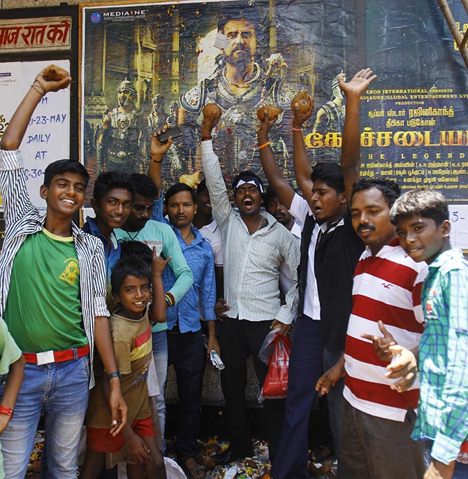 The scenes in Tamil Nadu were unreal as big Rajinikanth cutouts were bathed in milk. A leading multiplex opened 100 shows for Kochadaiiyaan for the first day to accommodate the army of Rajini followers. With the sales of satellite telecast rights in different languages along with brand tie ups and income from Kochadaiiyaan - The reign of arrows game, Kochadaiiyaan is all set to cross the magical Rs. 100 crore mark within three days of its release.