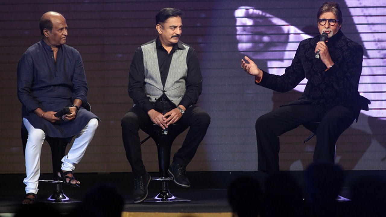 Amitabh Bachchan, Rajinikanth, and Kamal Haasan took turns to describe their association with the legendary composer.