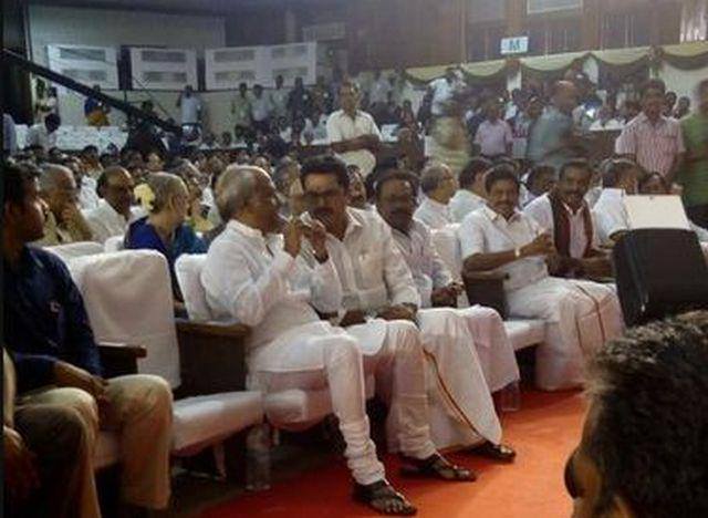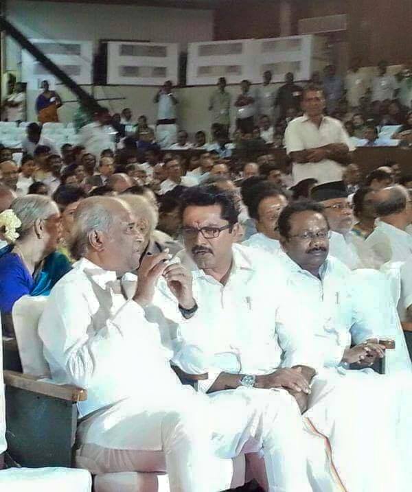 இதில் ஜெயலலிதாவுக்காக தனது எம்.எல்.ஏ. பதவியை ராஜினாமா செய்த ஆர்.கே.நகர் தொகுதியின் வெற்றிவேல் ரஜினியிடம் காலில் விழுந்து ஆசி வாங்கியபோது அங்கு பரபரப்பு ஏற்பட்டது (வெற்றிவேலுக்கு பிரச்சினை வருமோ...).