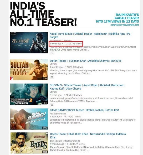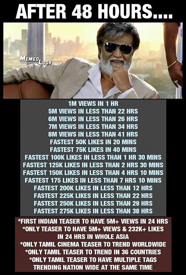 Tamil cinema audience were in for a treat on May 1st, Sunday, when the teaser of this year’s much-awaited film Kabali released. Starring our Superstar Rajinikanth as Kabali, the one-minute teaser has now garnered in close to 5 million views within 24 hours, and the hashtag #KabaliTeaser is still trending on social media. Sporting a salt and pepper look, and dressed in a sharp three-piece suit, the popular star looks majestic. The background music – Neruppu da (He is fire) gives a powerful introduction to the actor. The teaser has two of Rajinikanth’s trademarks – his powerful laughter and a whistle-worthy punch-line dialogue. But the biggest surprise element is the final portion of the teaser where we see Rajinkanth in a retro avatar (depicting the 70s), flipping his hair, which was his trademark when he began working in films. If you haven’t watched the Kabali teaser, you can watch it right here: