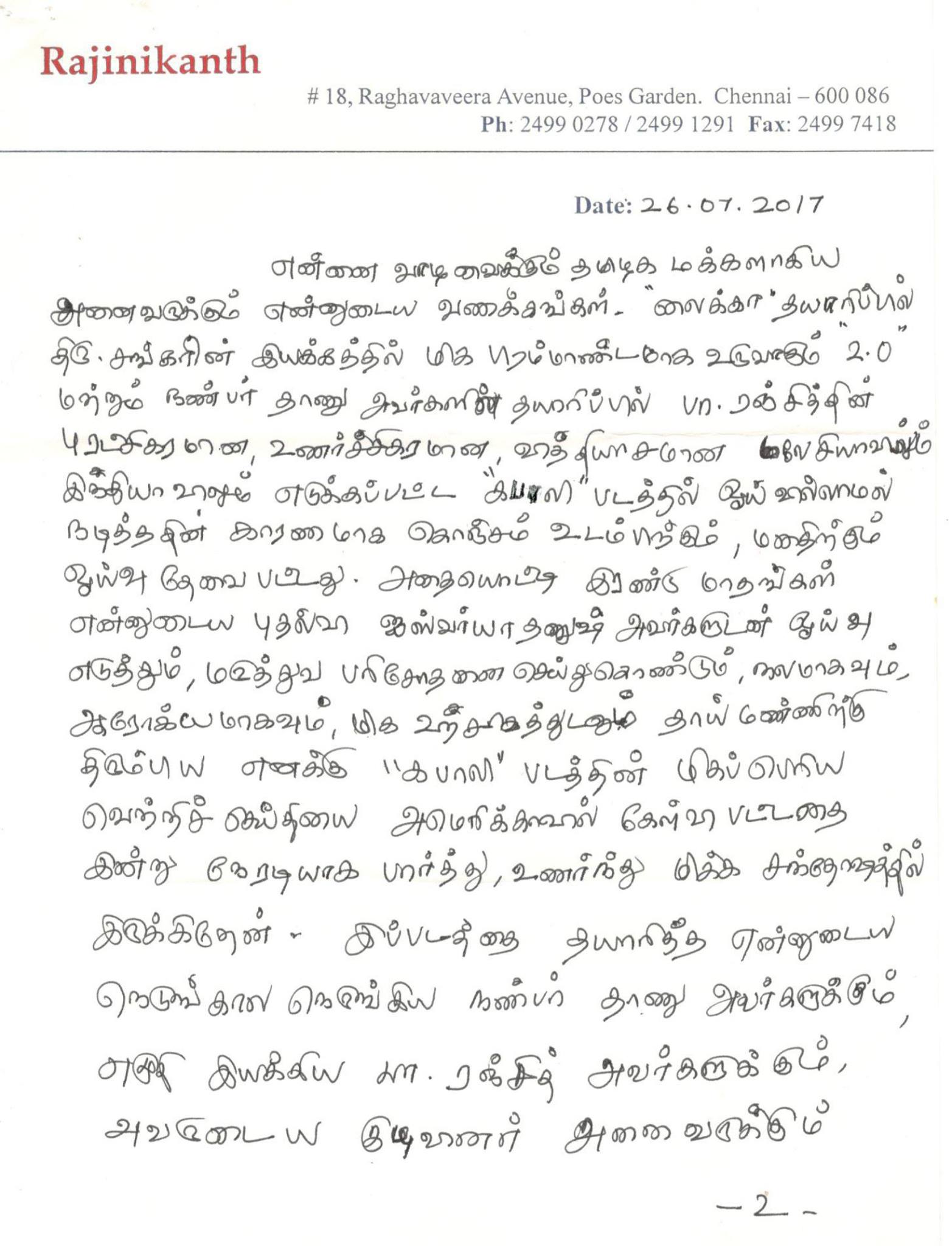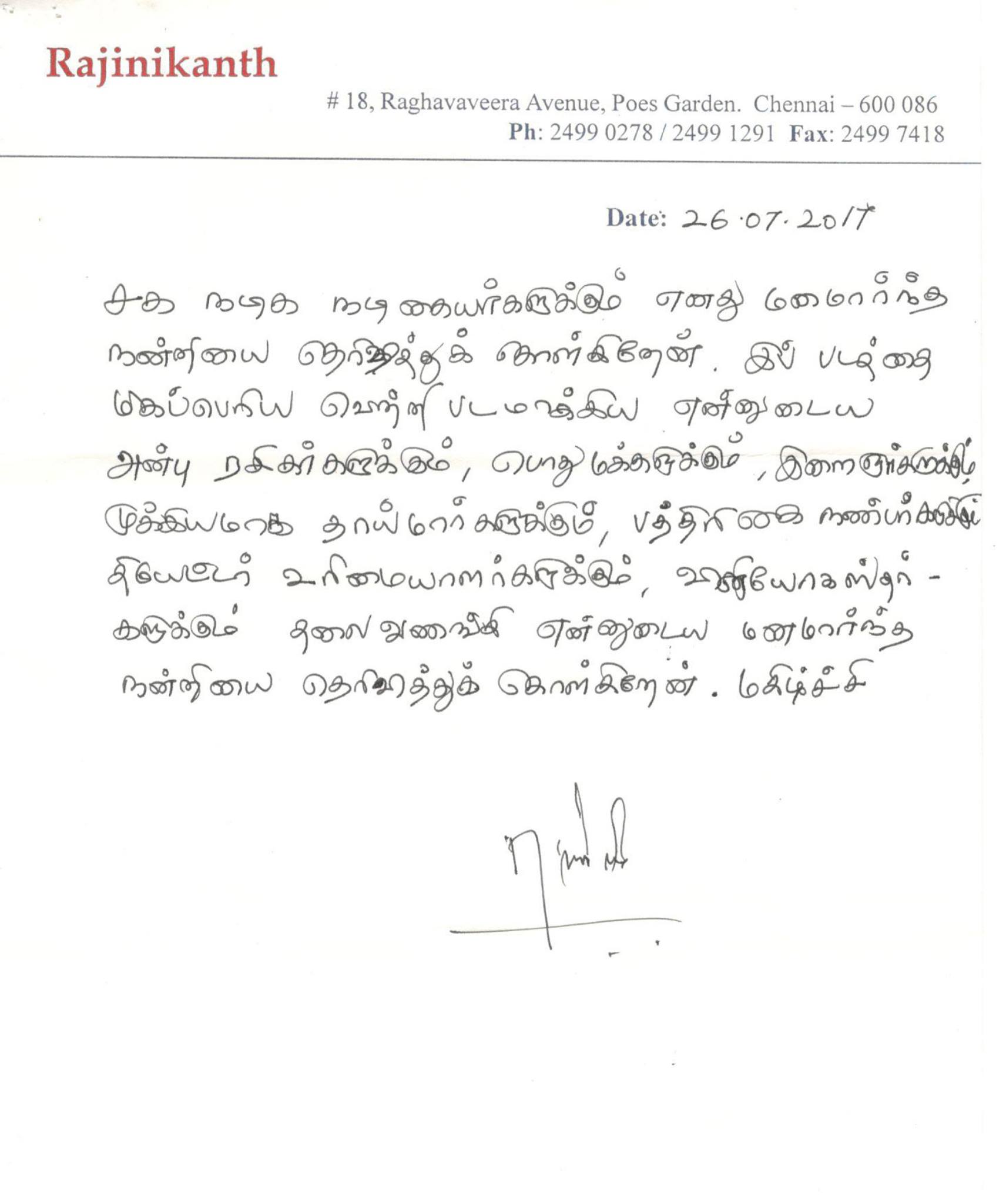 Thalaivar Superstar Rajinikanth official statement thanking people for the Grand success of #Kabali. #Magizhchi