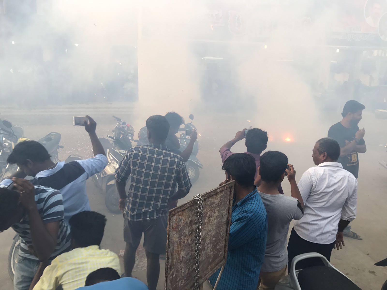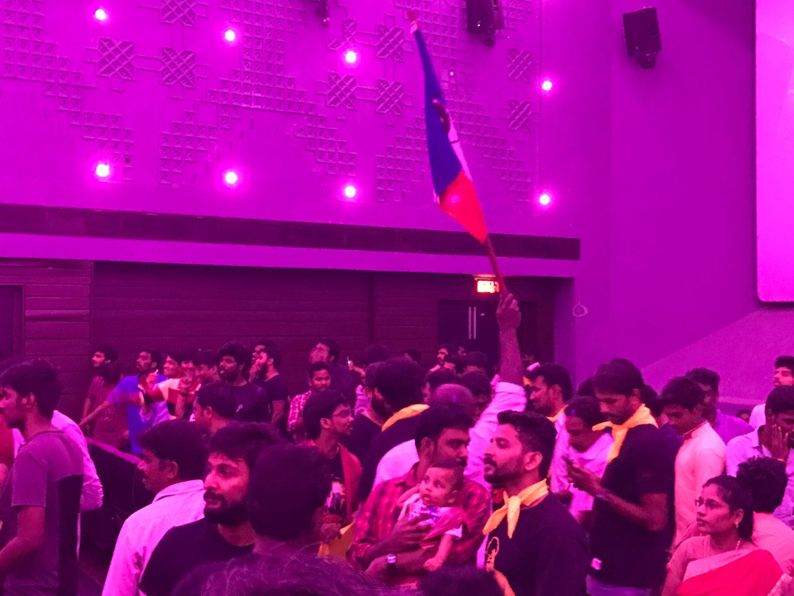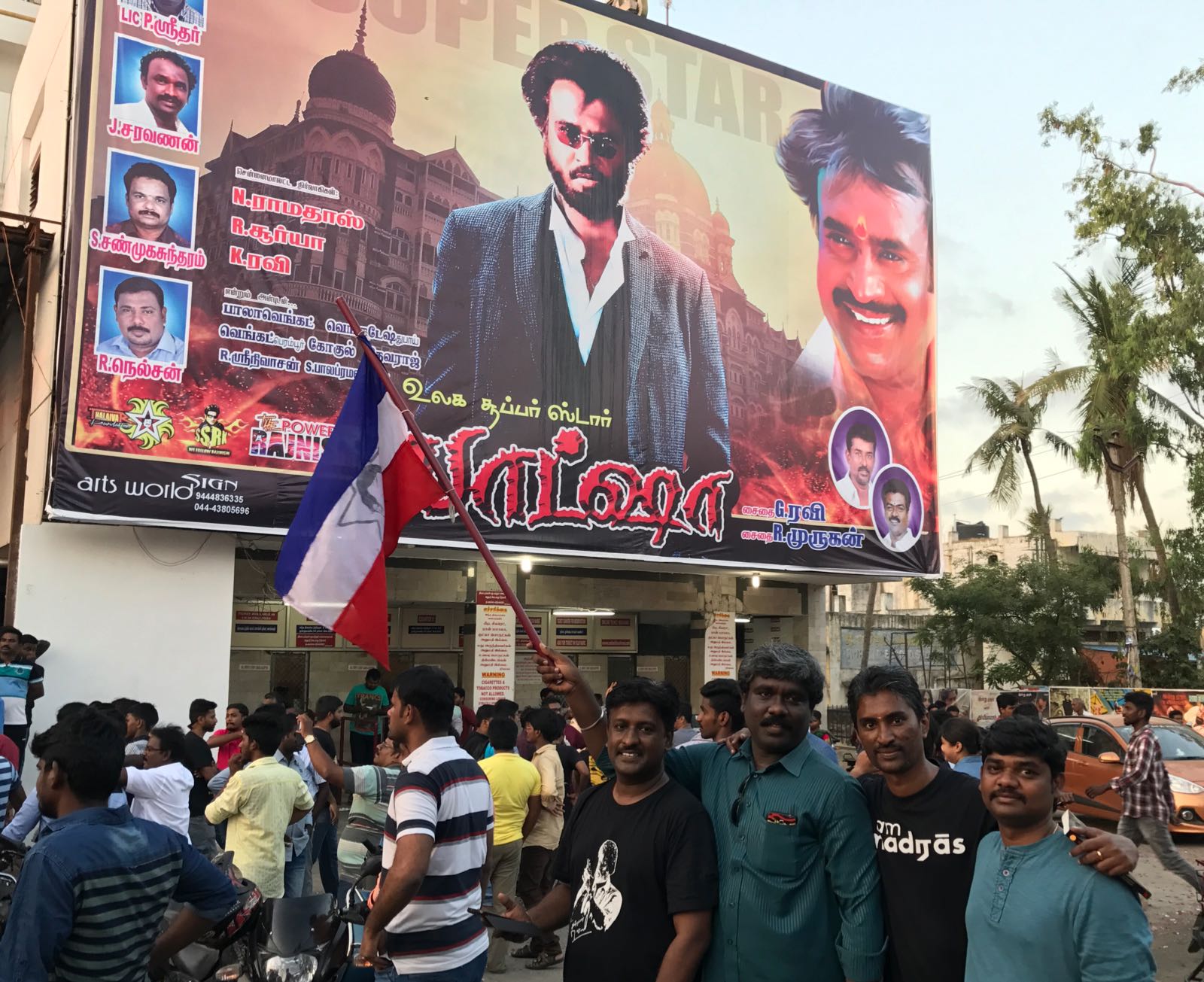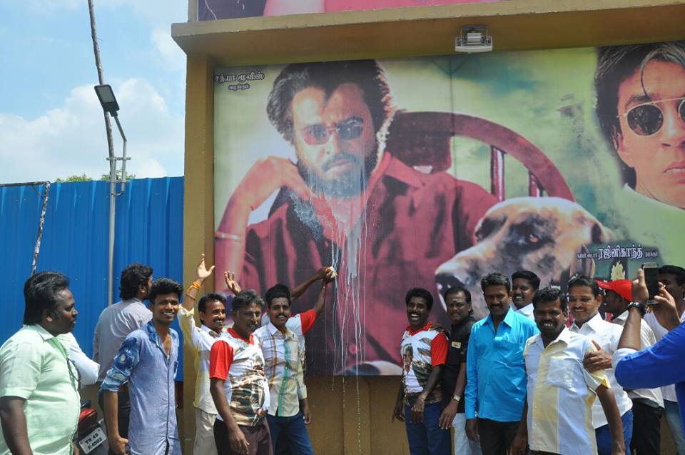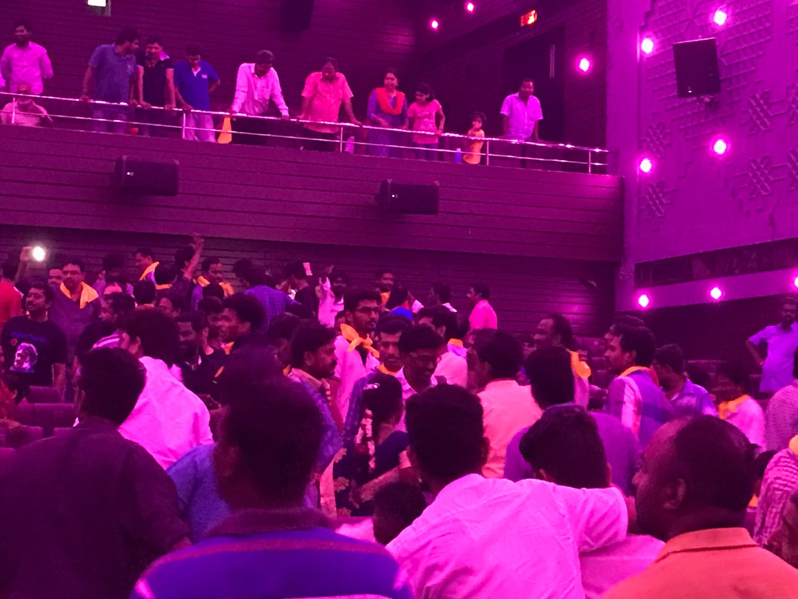 ஒவ்வொரு சீனும் போய்க்கொண்டிருந்த நேரத்தில் தலைவரின் என்ட்ரியை எதிர்பார்த்து உட்கார்ந்திருந்த சீட்டில் ஒரு இன்ச் தள்ளி உட்கார்ந்து ஸ்க்ரீனையே பார்த்துக் கொண்டிருந்தார்கள் ரசிகர்கள். சரியாக இந்த நேரத்தில் தலைவரின் காலைக் கண்ட ரசிகர்கள் தொண்டை கிழியும் அளவிற்குக் கத்தி எழுந்து ஆட ஆரம்பித்துவிட்டனர். ரஜினியின் தங்கைகள் இருவரும் பூசணிக்காயை ஆட்டோவைச் சுற்றி மேலே போட்டவுடன், அதை உடைப்பது தான் இன்ட்ரோ. நடக்க ஆரம்பித்த குழந்தை போல் ரசிகர்கள் திரையரங்கை அங்கும் இங்குமாக துள்ளிக் குதித்து வலம் வந்தனர். பாட்டுடன் சேர்த்து அங்கிருந்த அனைவரும் சேர்ந்து பாடத் தொடங்கினர்.