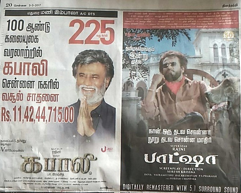 இந்த பாட்ஷா படத்தை டிஜிட்டல் தொழில்நுட்பத்தில் கடந்த வெள்ளிக்கிழமை உலகமெங்கிலும் வெளியிட்டுள்ளனர். அப்படி சென்னையில் கமலா தியேட்டரில் வெளியான பாட்ஷா படம் முதல்நாளில் இருந்து இப்போதுவரை அரங்கம் நிறைந்து ஓடிக்கொண்டிருக்கிறது. குறிப்பாக, அன்றைய தினத்தில் அதே தியேட்டரில் ரிலீசான சாந்தனுவின் முப்பரிமாணம், கிருஷ்ணாவின் யாக்கை படங்களின் வசூல் ரஜினியின் பாட்ஷாவினால் பெரிதும் பாதிக்கப்பட்டுள்ளதாம்.
