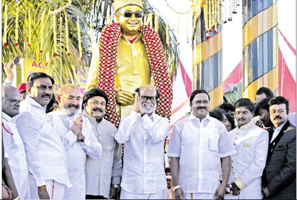 சென்னை வேலப்பன் சாவடியில் உள்ள எம்.ஜி.ஆர்., கல்வி மற்றும் ஆராய்ச்சி நிறுவனத்தில் அமைக்கப்பட்டிருந்த எம்.ஜி.ஆர் சிலை திறப்பு விழா, எம்.ஜி.ஆர் நூற்றாண்டு விழா மற்றும் அந்த கல்வி நிறுவனத்தின் 30வது ஆண்டுவிழா ஆகியவை நேற்று நடைபெற்றது. இதில் நடிகர் ரஜினிகாந்த் கலந்துகொண்டார். விழாவிற்காக தனது போயஸ்கார்டன் இல்லத்திலிருந்து புறப்பட்டு வந்த ரஜினிக்கு வழி நெடுகிலும் ஆயிரக்கணக்கான ரசிகர்கள் திரண்டு வந்து வரவேற்பு அளித்தனர். இதனால் சென்னை கோயம்பேடு உள்ளிட்ட இடங்களில் போக்குவரத்து நெரிசல் ஏற்பட்டது. பின்னர் நிகழ்ச்சியில் கலந்துகொண்ட ரஜினி எம்.ஜி.ஆர் சிலையை திறந்து வைத்தார்.
