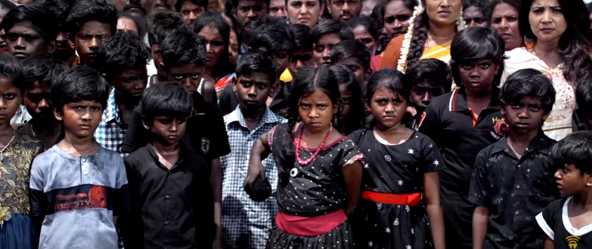 சிறுவர்கள் குதியாட்டத்தில் கோபம் கொப்பளிக்கக் கூட்டம் இன்னும் இன்னும் ஆர்ப்பரிக்கின்றது.. "ஹேய்.. ஹேய்" என்று ஹரியை அச்சுறுத்திய கூட்டத்துக்குப் பயந்து தன் தோள் துண்டால் கலைய முற்படுகிறார்.
