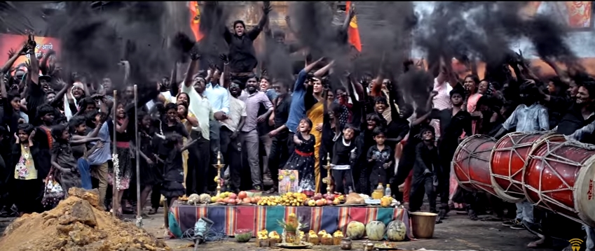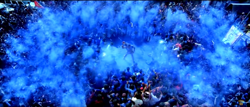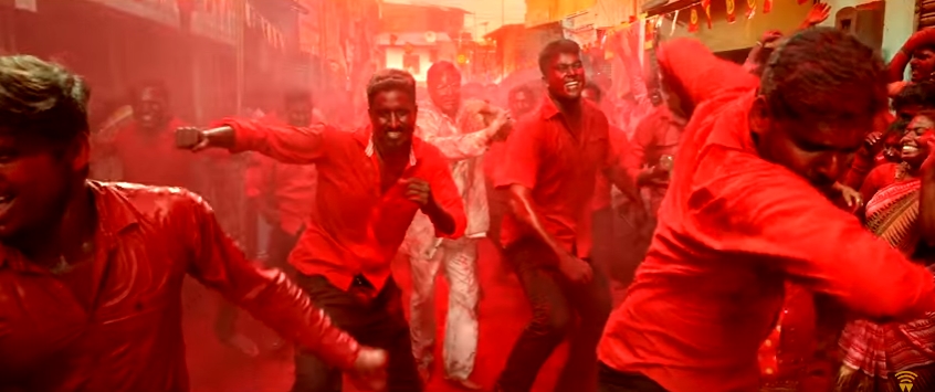கூட்டம் ஆர்ப்பரித்து மகிழ்கிறது.. முதல் அடியை வாங்குகிறார்.. "வெளுத்து வாங்கும் மனுசங்க இங்க ஒன்னு சேர்ந்து நெறிக்கணும் சங்க" என்ற வரியில் அடுத்த வண்ணம் படர்கிறது.. சிவப்பு.