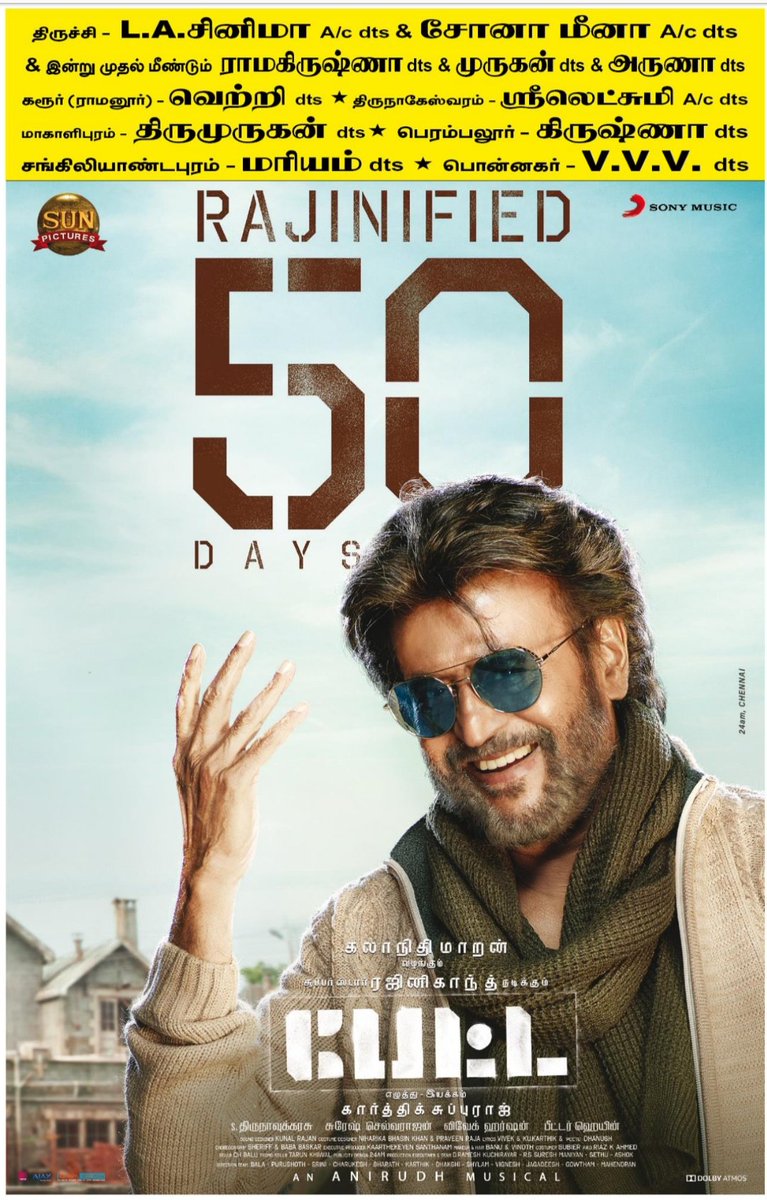.jpg) என் 41ஆண்டு கால மன்ற அனுபவத்தில் தென்சென்னை(கிழக்கு) மாவட்ட ரஜினி மக்கள் மன்றம் சார்பில் ஆல்பர்ட் திரையரங்கில் நடைபெற்ற மக்கள் தலைவரின் பேட்ட 50 வது நாள் வெற்றி திருவிழா கொண்டாட்டம் போல் இதுவரை கண்டதில்லை... அழைப்பிதழ் தொடங்கி அனைத்தும் பிரம்மாண்டம் விழாவில் முத்தாய்ப்பாக மக்கள் தலைவரின் அன்பு துணைவியார் அம்மா வை அழைத்து மூன்று பச்சிளம் குழந்தைகளுக்கு மறைந்த இராணுவ வீரர்கள் பெயர் சூட்டி தங்க சங்கிலி தங்க மோதிரம் அம்மாவின் பொற்கரங்களால் அணிவித்து தேச பக்தியையும் நம் அம்மாவின் குழந்தைகள் காப்போம் திட்டத்தை வெளிப்படுத்திய விதம் அருமை!.. அவ்வளவு கூட்டத்திலும் வருகை தந்த மாவட்ட செயலாளர்களை அன்புடன் வரவேற்று உபசரித்தது மிக அருமை!.. படம் தொடங்கி முடியும் வரை அம்மா கார்த்திக் சுப்புராஜ் அனிருத் ரசிகர்களுடன் சேர்ந்து அமர்ந்து படம் பார்த்து ரசித்தது மகிழ்ச்சி இத்துனை ஏற்பாடுகளை மிகச் சிறப்பாக செய்த மாவட்ட செயலாளர் சினோரா அசோக் மற்றும் நிர்வாகிகளுக்கு என் நெஞ்சம் நிறைந்த நன்றிகள் பல!...