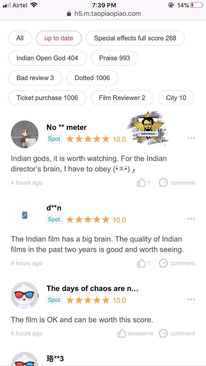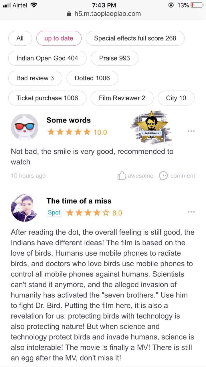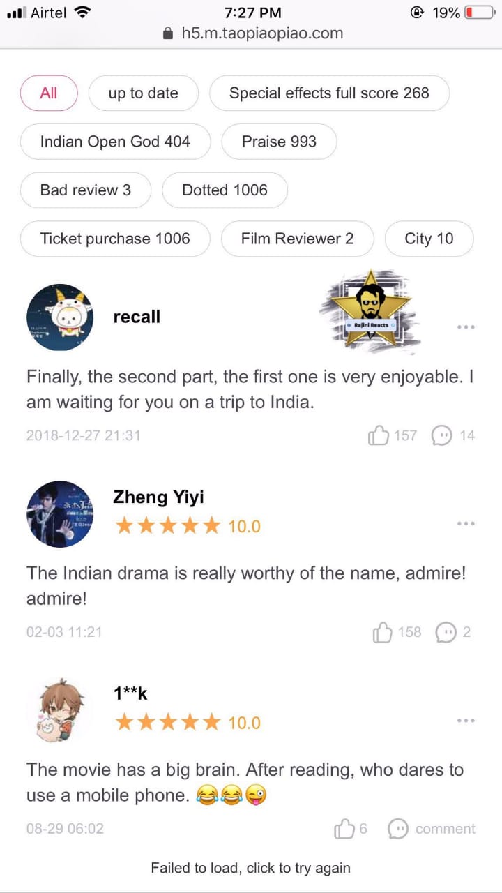 The Twitter handle, going by the name China Box Office took to Twitter to share, "#2Point0InChina Crossed ¥3.4M [$475k] (3.41Cr) In Total Pre-sales. Now On 2nd In Pre-sales. Opening Day Pre-sales Is ¥2.3M [ $320k] (?2.3Cr). Shows 59k (Higher Than Recent Indian Releases) (sic)"