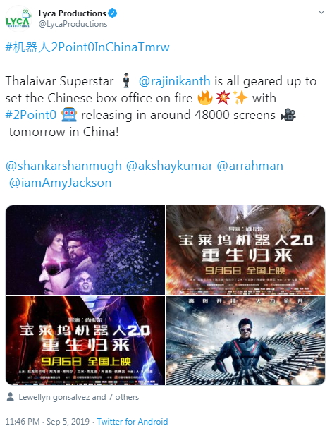 Since the Chinese audience have been receptive to Indian films in the past, the makers of 2.0 are confident of the film doing exceptionally well in the theatres.