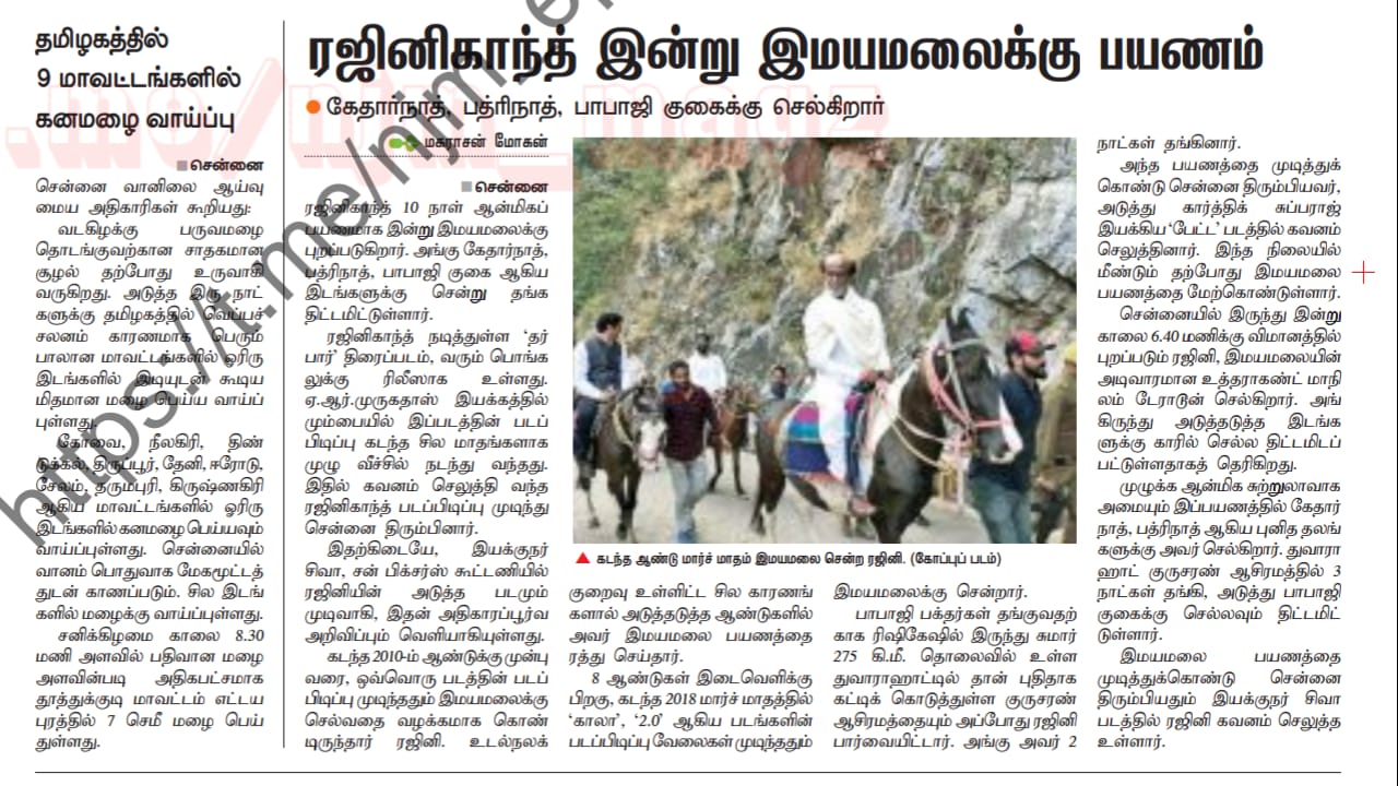 Superstar Rajinikanth is currently on a spiritual tour to the Himalayas. It has been a routine for him to go to multiple ashrams and caves to meditate and relax before he commences his next film. As soon as he wrapped up the shooting of Darbar, Rajinikanth along with his daughter Aishwarya Dhanush flew to Rishikesh.