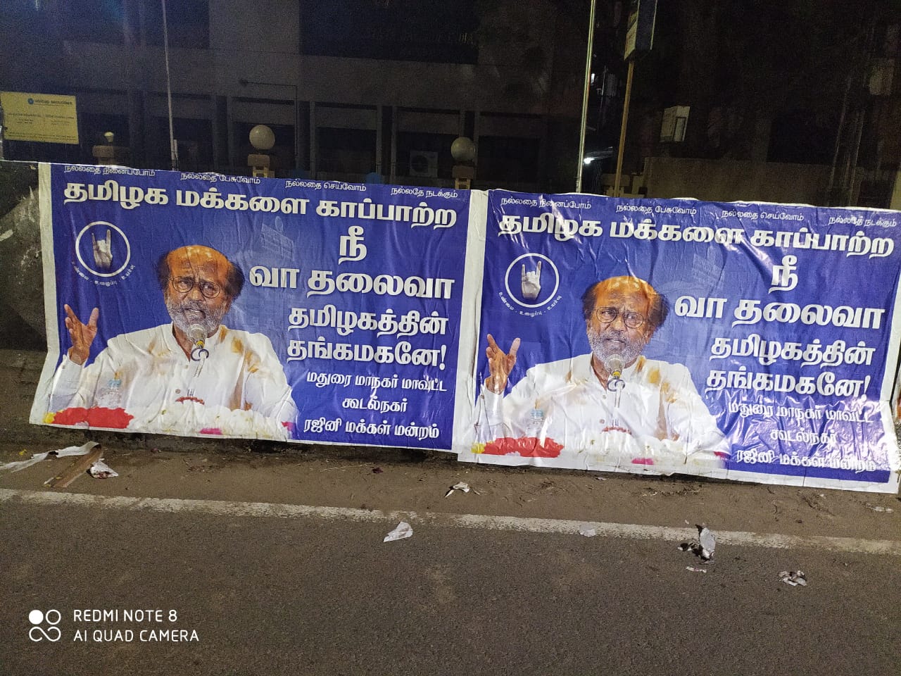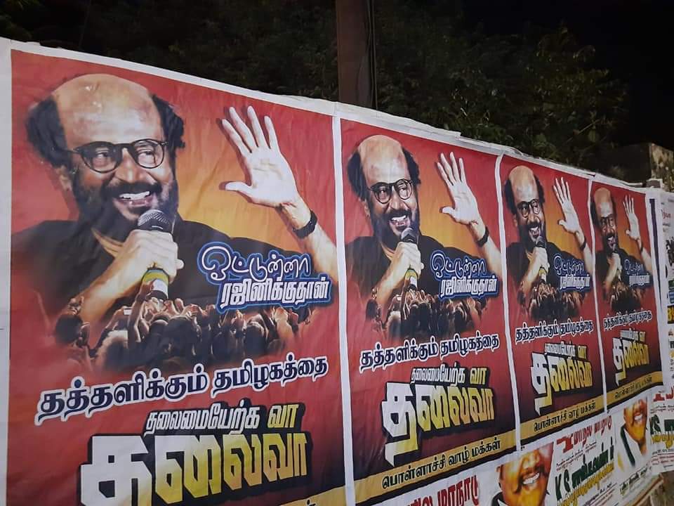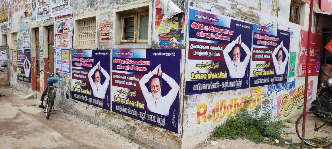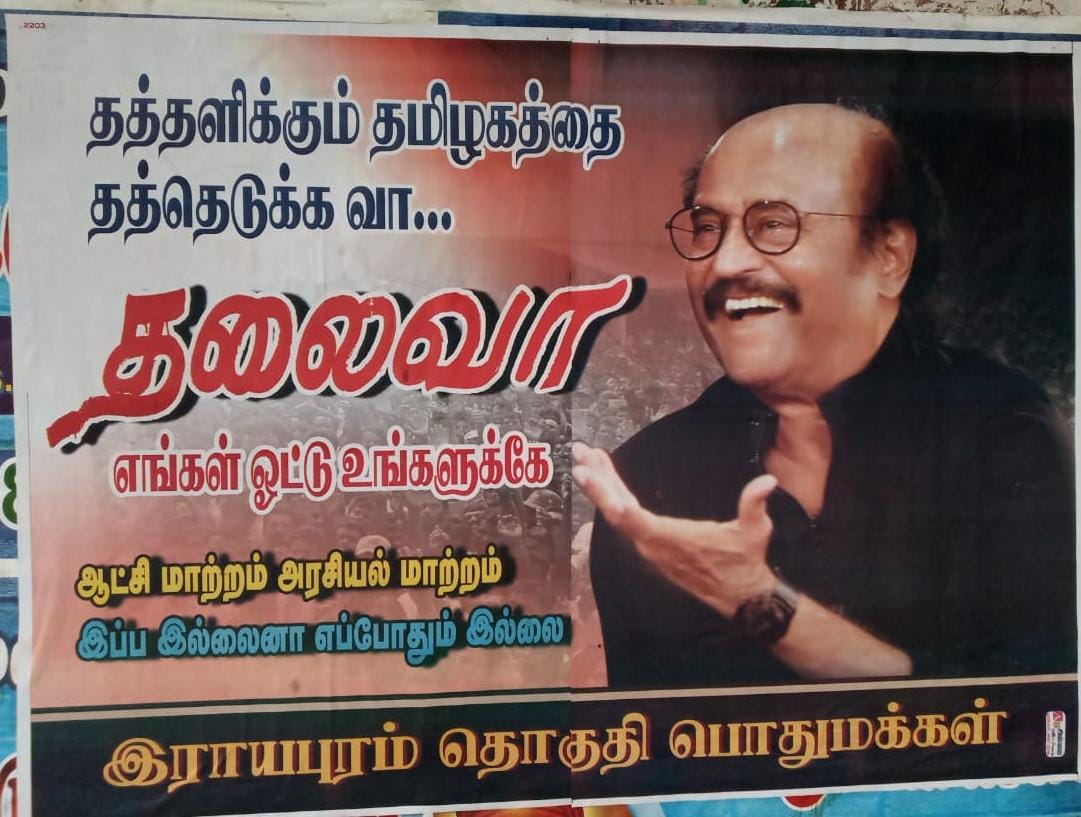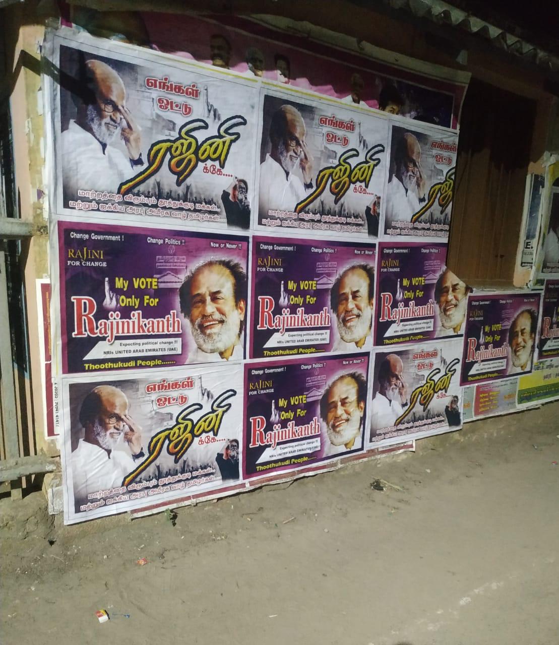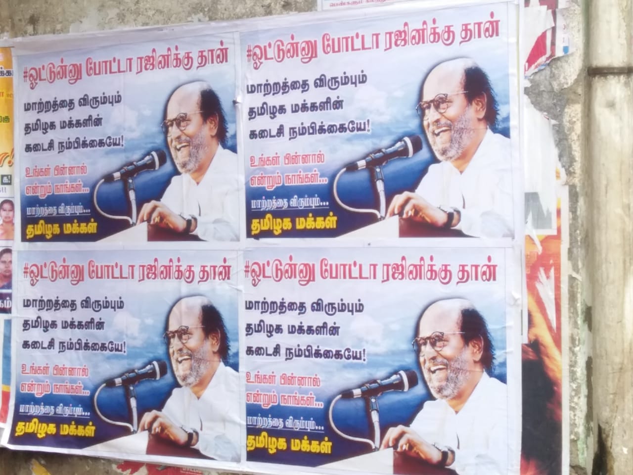 சில ரசிகர்கள் நடிகர் ரஜினிகாந்துக்கு ஆதரவாக சுவரொட்டிகளை வெளியிட்டு விரைவில் அரசியலுக்கு வருமாறு கேட்டு வருகின்றனர்.