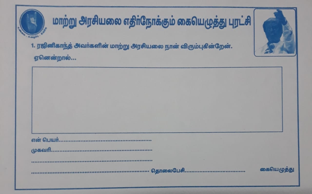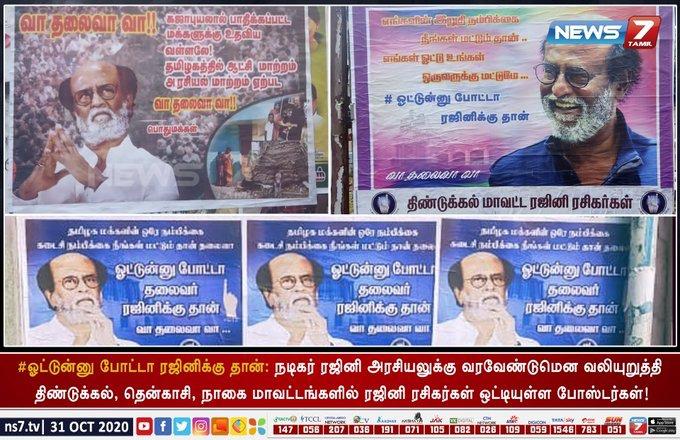 “நாங்கள் ரஜினியை ஆதரிக்கிறோம்” என்ற தலைப்பில் சமூக வலைத்தளத்தில் வீடியோக்கள் மூலம் பிரச்சாரம் செய்து வருகின்றனர். கடந்த அக்டோபர் 29 ஆம் தேதி நடிகர் ரஜினிகாந்த் தன்னுடைய ட்விட்டர் பக்கத்தில் கொரோனா வைரஸ் தொற்று நோய் காரணமாகவும் தன்னுடைய உடல்நிலை காரணமாகவும் அரசியலில் தற்போது இணைய வாய்ப்பில்லை என்று தெரிவித்திருந்தார்.
