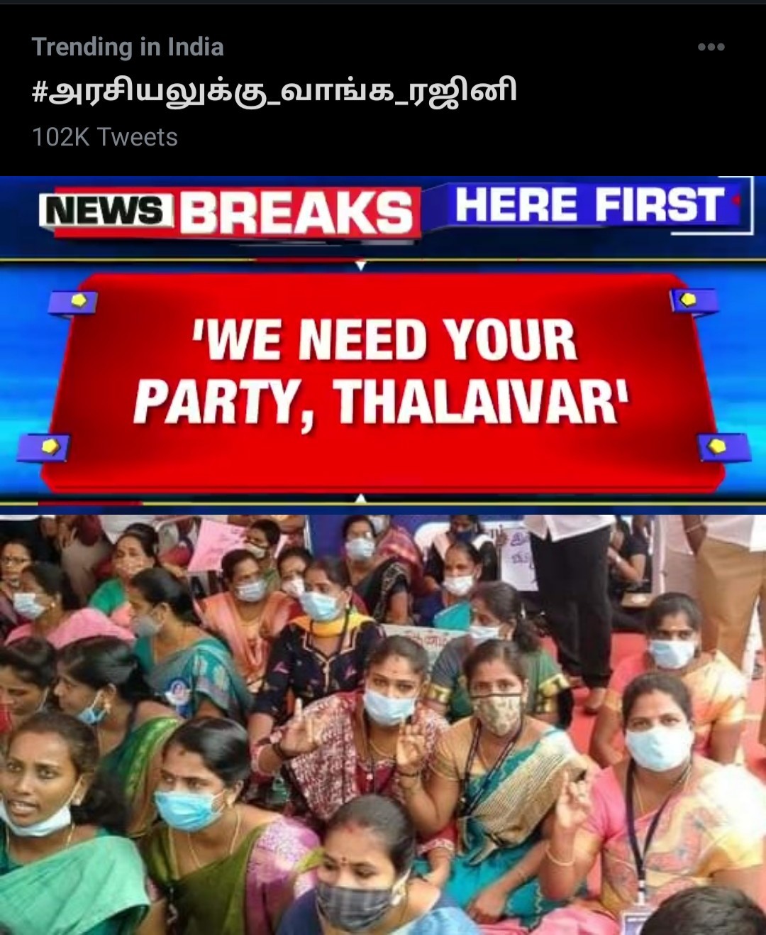 தலைவர் வந்தால், இதெல்லாம் மாற்றம் பெறும், இதெல்லாம் நடக்கும் என்று காத்து இருப்பவர்கள், தங்களின் இன்னும் மிச்சம் இருக்கும் நம்பிக்கையை இதைப்போல வெளிப்படுத்துகிறார்கள்.