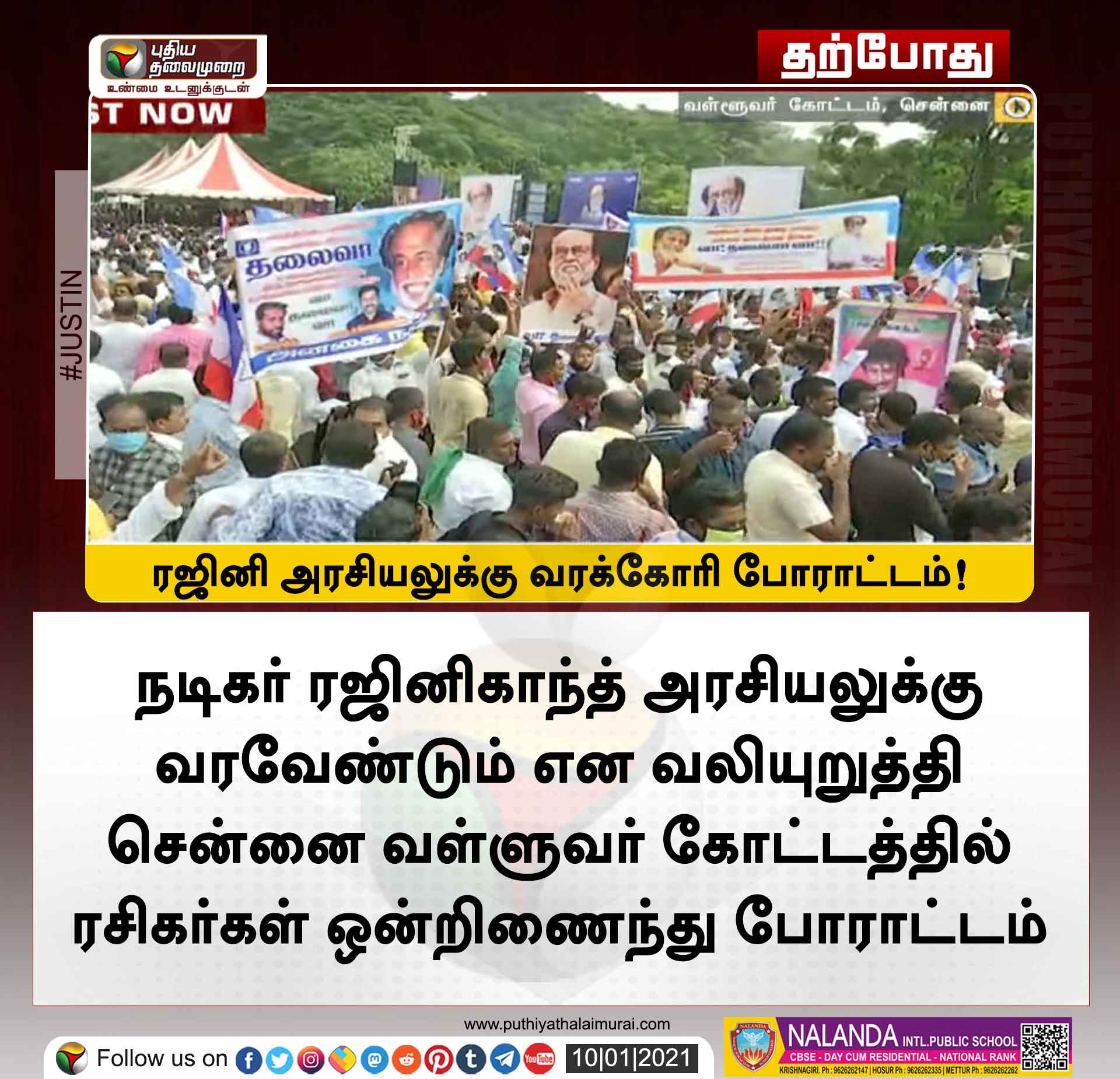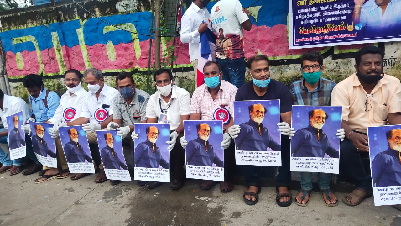 தலைவர் ரசிகர்கள் தங்கள் எதிர்பார்ப்பை வெளிக்காட்ட, தலைவரை அரசியலுக்கு அழைக்க அறவழி போராட்டத்தை நடத்தி இருக்கிறர்கள்.