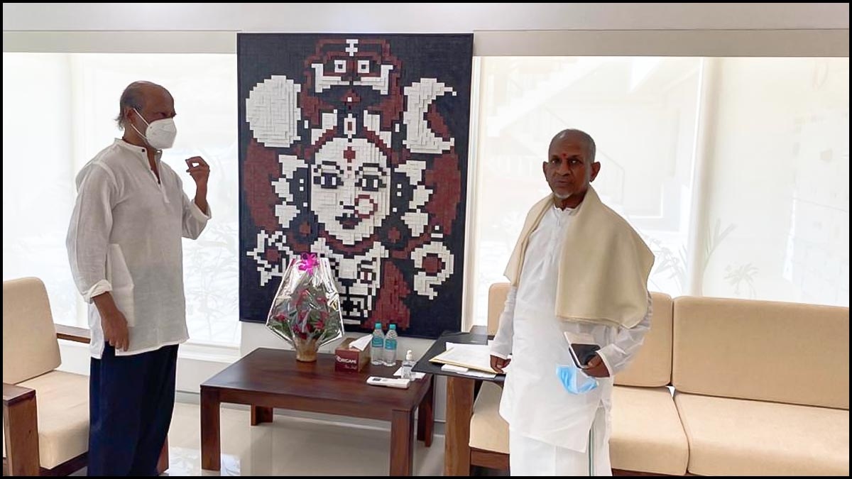 Superstar had initially met Mr. Ilaiyaraaja at his residence on Monday and decided to visit the new studio. He was given a tour of the new studio on Kodambakkam High Road in T. Nagar.
