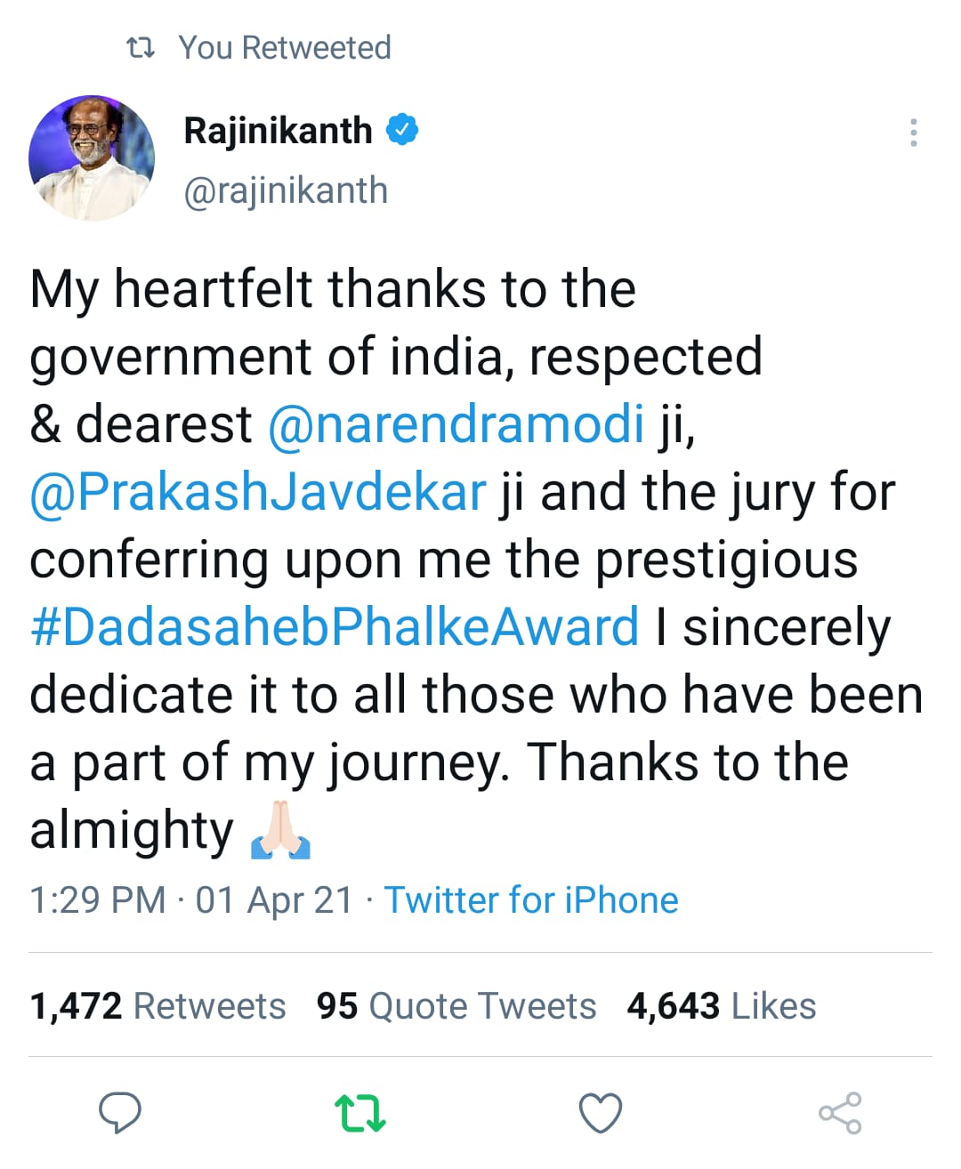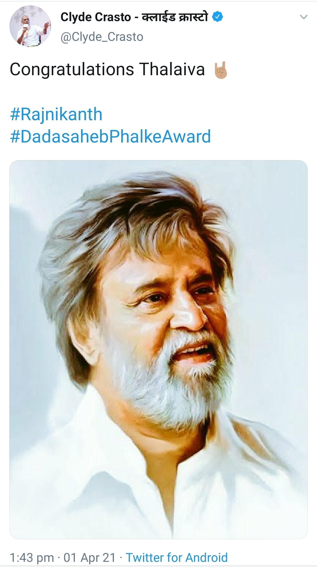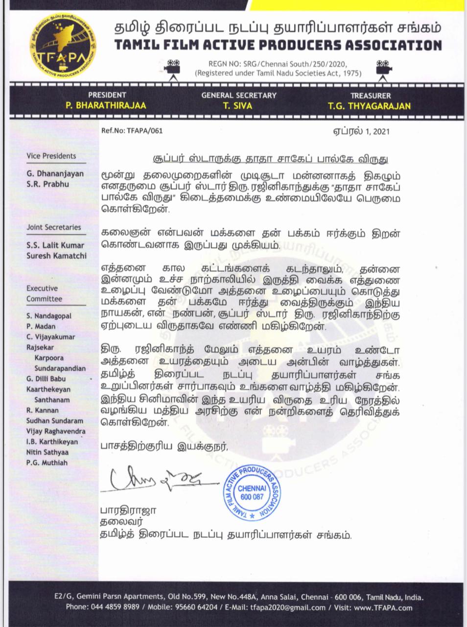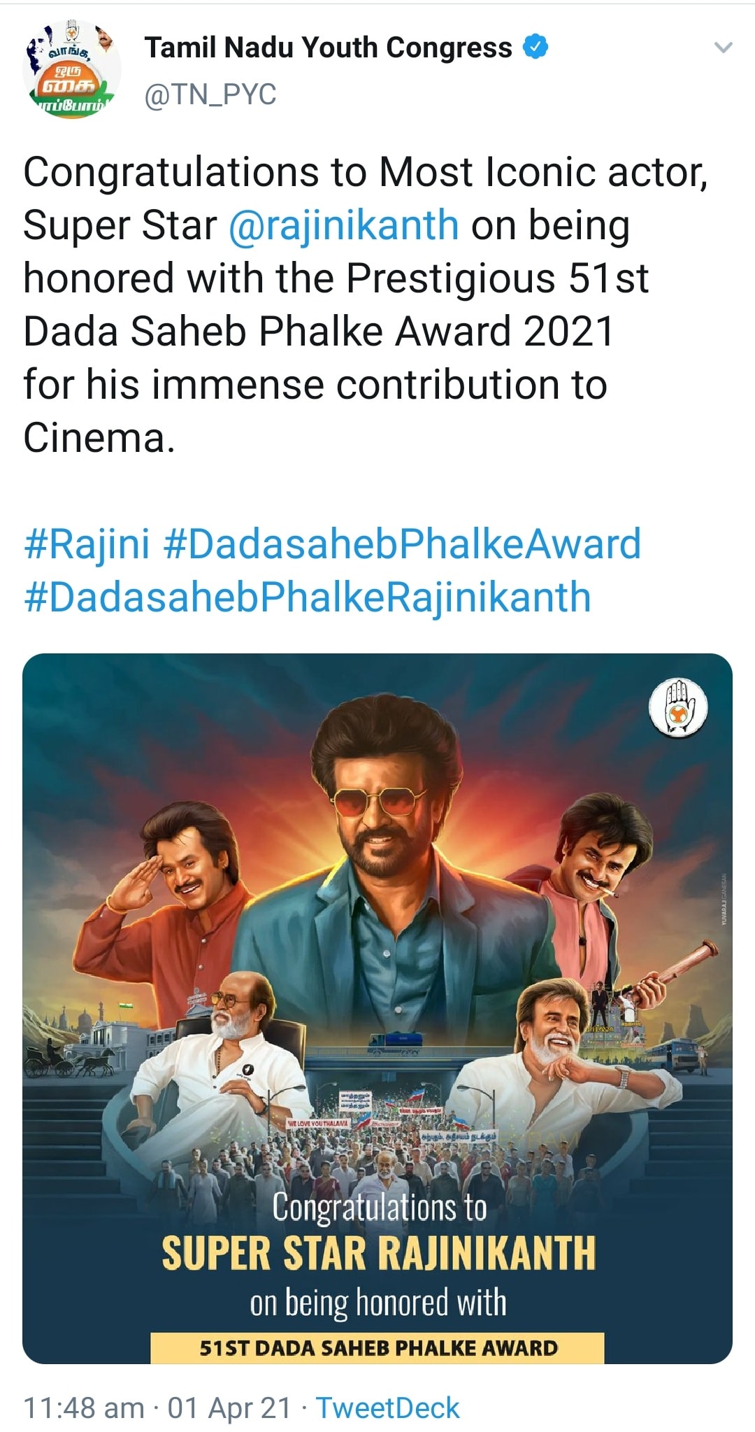 தமிழன் வளர்ந்தா தமிழ் தானா வளரும் என்று அவர் கூறியது போல, தானும் வளர்ந்து, ஜப்பானியரையும் தமிழ் கற்க வைத்த "தாதா சாஹேப் பால்கே" ரஜினிக்கு…… "தலைவர்" ரஜினிக்கு வாழ்த்துக்கள்….