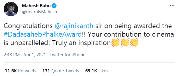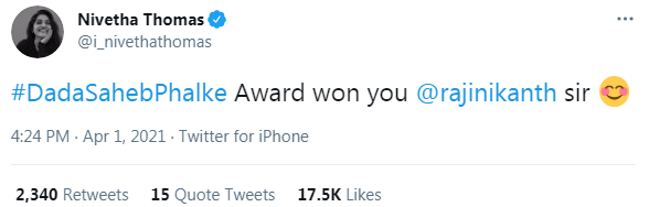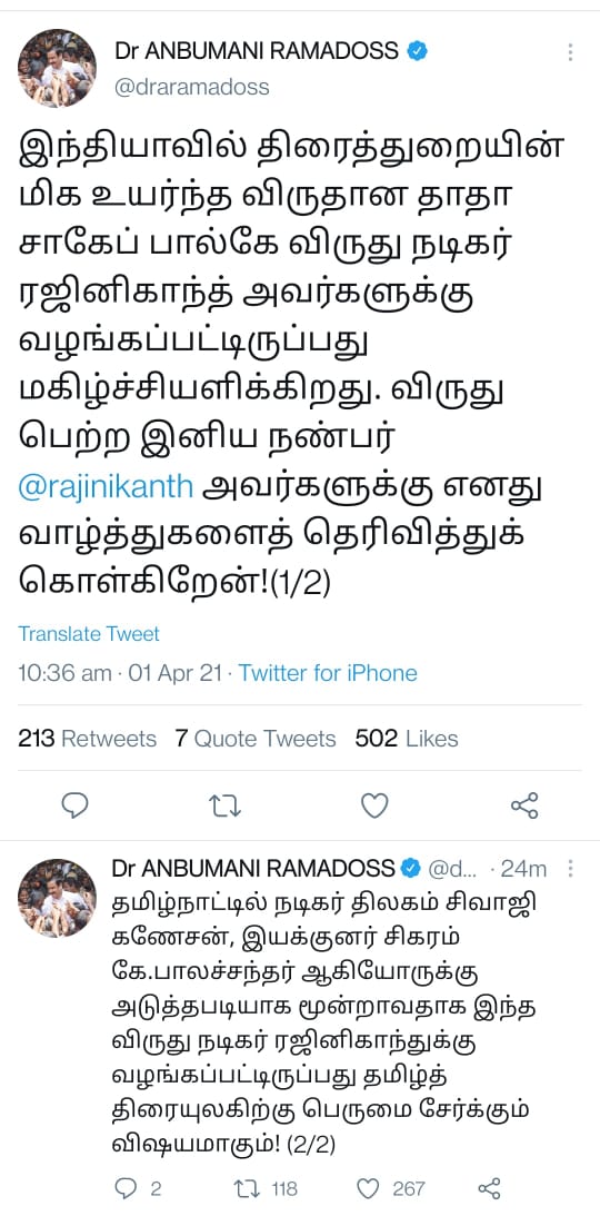 விருது அறிவித்த உடனே ரஜினியின் ரசிகர்களின் வாக்குகளை கவர்வதற்கு பாஜக இந்த விருதை அறிவித்துள்ளது என ஒரு கோஷ்டி பொங்கியது. அந்தந்த கோஷ்டியின் தலைவர்கள் எல்லாம் ரஜினியை வாழ்த்தியவுடன் தாங்களும் கமுக்கமாக ரஜினியை வாழ்த்திவிட்டு செல்கின்றனர் !!!