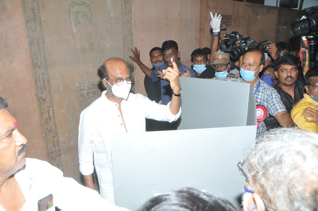 உடனடியாக அங்கு வந்த போலீசார் ரஜினிகாந்தை பாதுகாப்பாக வாக்குப்பதிவு செய்யும் இடத்திற்கு அழைத்துச் சென்றனர். இந்த தேர்தலில் சூப்பர் ஸ்டார் ரஜினிகாந்த் கட்சி ஆரம்பித்திருக்க வேண்டியது. ஆனால் கொரோனா பரவல் காரணமாகவும், தன்னுடைய உடல் நலனை கருத்தில் கொண்டும் அரசியலில் இருந்து விலகுவதாக திட்டவட்டமாக அறிவித்தார். இருந்தாலும் சூப்பர் ஸ்டார் ரஜினிகாந்த் எந்த கட்சிக்காவது தன்னுடைய ஆதரவை அறிவிப்பார் என்றும் எதிர்பார்க்கப்பட்டது. ஆனால் அப்படி எதுவுமே நடக்கவில்லை.