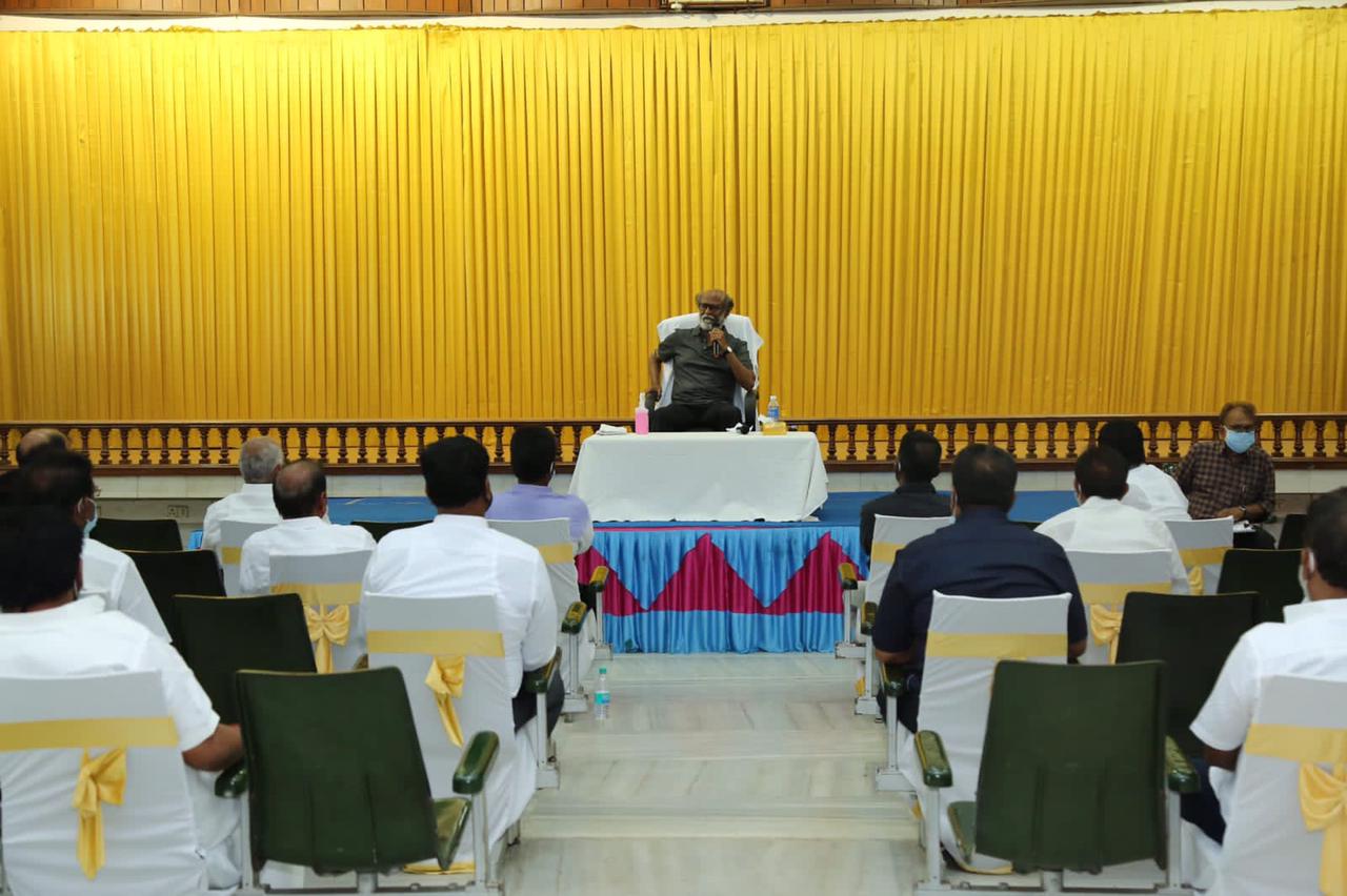 முன்னதாக, செய்தியாளர்களிடம் திங்கட்கிழமை காலையில் பேசிய ரஜினிகாந்த், உடல் நல பிரச்னைகள் காரணமாக அமெரிக்காவுக்கு சிகிச்சைக்காக சென்று திரும்பியதாகவும், கொரோனா கால சூழல்கள் காரணமாக பொதுவெளியில் அனைவரையும் சந்திப்பதை தவிர்த்ததாகவும் கூறினார். இதைத்தொடர்ந்து அடுத்த சில நிமிடங்களில் நிர்வாகிகளுடன் பேசிய ரஜினிகாந்த், தமது அரசியல் நிலைப்பாடு மற்றும் மக்கள் மன்றம் தொடர்பான நிலைப்பாட்டை தெளிவுபடுத்தியுள்ளார்.