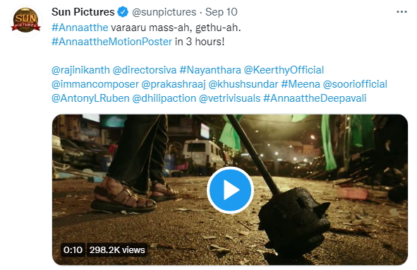 தொடர்ந்து மாலை 6 மணியளவில் அண்ணாத்த படத்தின் மோஷன் போஸ்டர் வீடியோவும் வெளியானது.