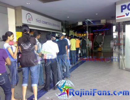 * Shouting and screaming is not allowed at the GV screens, but the distributor has mentioned that he's worried about how to control the crowds. During the Chandramukhi screening, police had intervened to control the shoutings. And Sivaji is expected to have more punch dialogues and will be more stylish and more actions ... the crowd is surely going to create more problems by shouting and screaming and dancing. We expect to have more galatta at the GV Yishun this time, but the key pulse of the excitement is going to be at the Plaza theatre... when 1,000+ fans start to shout nad scream at the sametime. Something like this will never happen for any other heroes movies in Singapore!