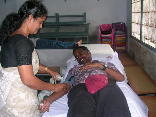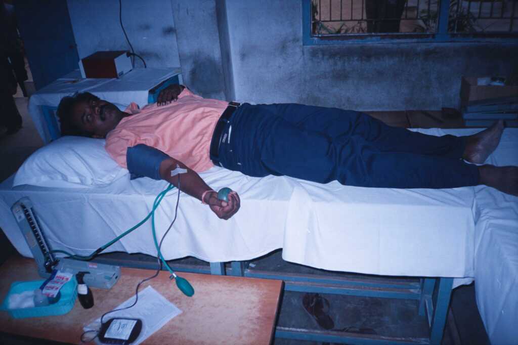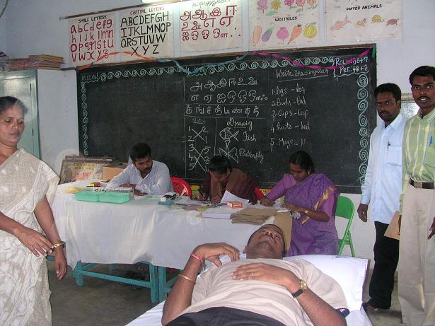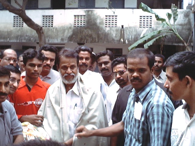 In view of celebrating Super Star's 55th Birtday, www.rajinifans.com arranged a Blood Donation Camp on 12th December 2004 at Shakespeare Matriculation School, Vadapalani, Chennai. 46 Members Chennai members participated in the Blood camp and donated their blood. Thalapathi Sathyanarayana visited the Blood camp and wished the Donors.