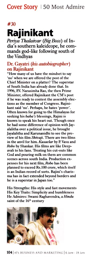 Rajinikanth bagged the prestigious VIJAY Award for Best Actor 2007