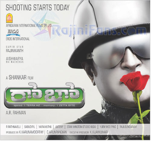 thalaiva my hearty congrats to u........... i love the pster so my...........its rocking....and v all know shankar and u will again make a history in flim industry